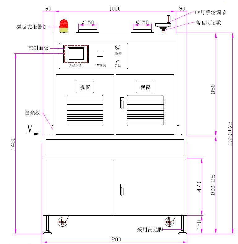 | 1、UV燈功率:5.0kw*2支(進(jìn)口燈) | 2、UV燈總長:660mm、弧長:550mm |