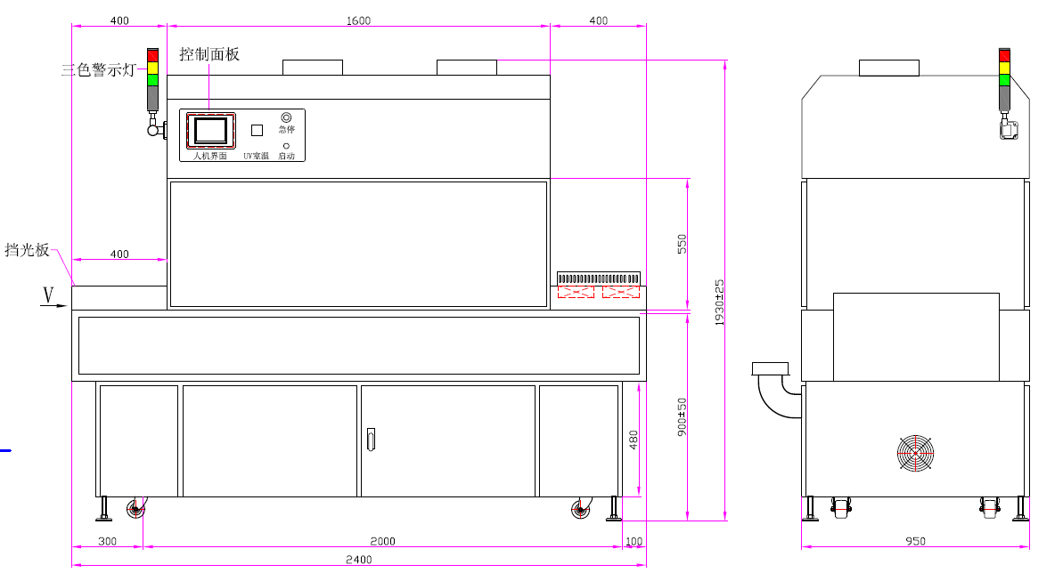 | 3、UV燈功率:3.0kw*2支、6kw*2支(UV汞燈) | 4、UV燈總長(zhǎng):3.0kw:400mm、6kw:620mm |