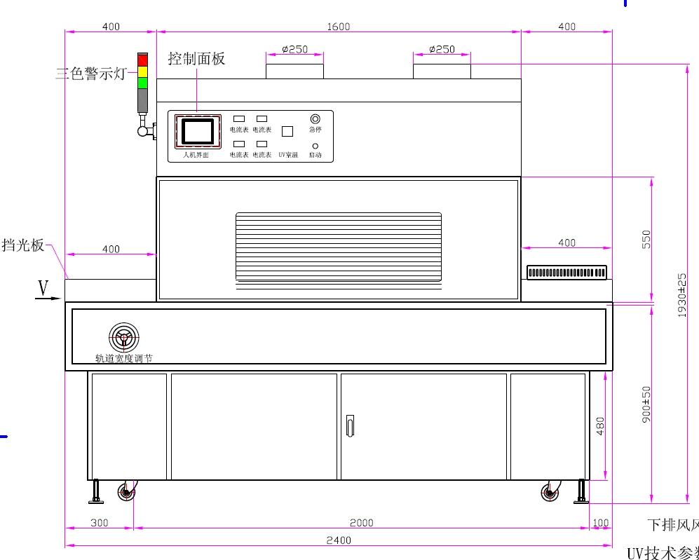 | 3、UV燈功率:3.0kw*2支、6kw*2支(UV汞燈) | 4、UV燈總長:3.0kw:400mm、6kw:620mm |