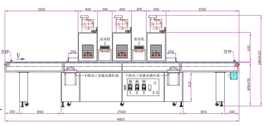| 9、采用上、下排風系統 | 10、輸送材料:特氟龍網帶(導條) |